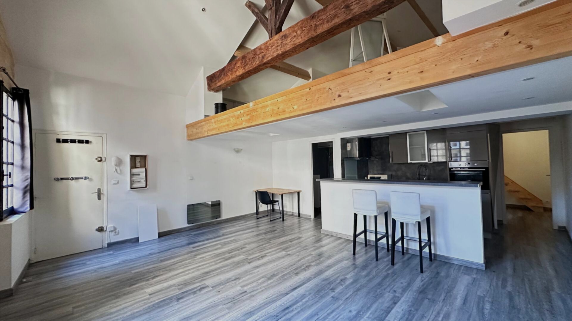 Il offre une spacieuse pièce de vie avec cuisine US entièrement équipée, salle d’eau avec douche italienne, une chambre et une grande mezzanine.