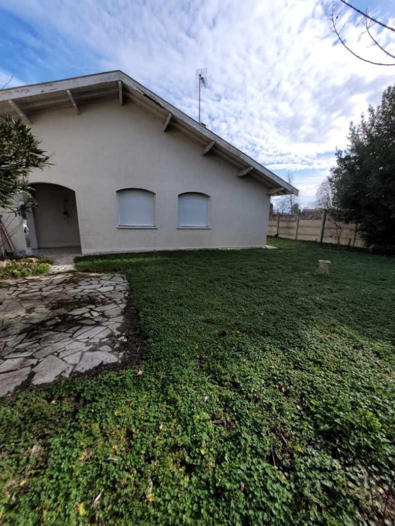 BRUGES. Maison mitoyenne de plain-pied comprenant séjour, cuisine équipée, 3 chambres, salle de bains, buanderie, idéale pour une famille. Terrain piscinable offrant de belles possibilités d’aménagement extérieur, avec places de stationnement, environnement calme.